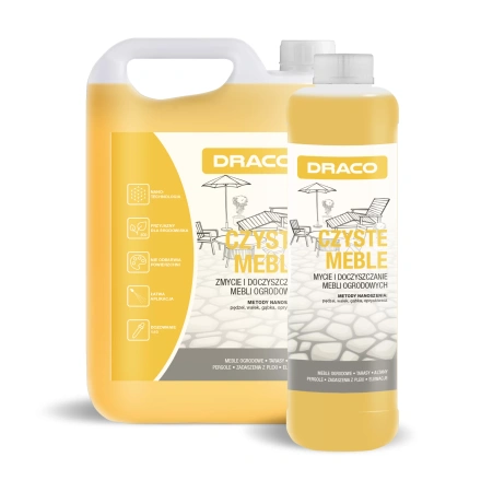 - Specjalistyczny preparat CZYSTE MEBLE marki Draco-Bis to skuteczne rozwiązanie do mycia, odtłuszczania i doczyszczania mebli ogrodowych oraz powierzchni zewnętrznych.