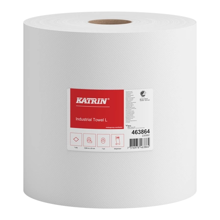 Katrin 463864, to przemysłowe czyściwo papierowe do podstawowych zadań w przemyśle. Wytrzymały papier z makulatury, sprawdzi się do większości zadań związanych z wycieraniem zabrudzeń przemysłowych. Jednowarstwowe czyściwo jest chłonne i doskonale nadaje się do zabrudzeń tłustych, oleistych i lepkich jak smary. Jedna ekonomiczna rolka naturalnie białego czyściwa Katrin to1230 metrów czyściwa, dzięki czemu wymiana wkładów staje się rzadsza, a sama rolka jest bardzo wydajna.