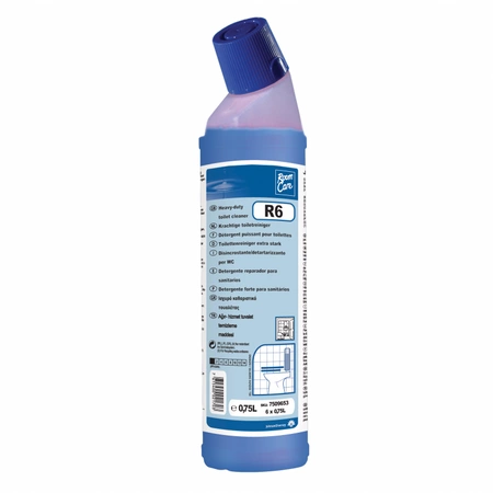 Room Care R6 Plus to gęsty płyn przeznaczony do gruntownego mycia toalet. Środek jest gęsty i lepki i doskonale przywiera do mytej powierzchni, dzięki czemu zapewnia wydłużony czas kontaktu preparatu z powierzchnią. Zawiera kwasy nieorganiczne i kwasy powierzchniowo czynne. Dostępny jest w porecznej butelce.