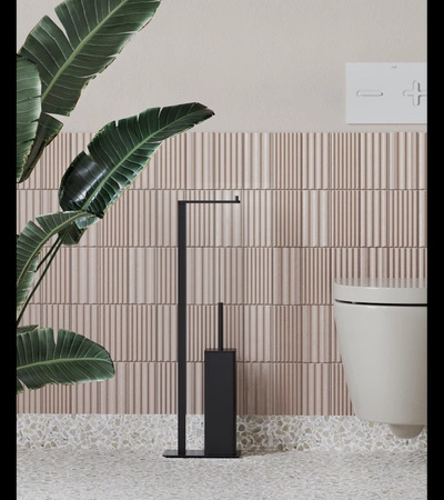 - Na akcesorium składa się stylowy stojak na papier toaletowy, a także poręczna szczotka WC skryta w pojemniku. Taki dodatek do łazienki, nie tylko sprawdzi się na co dzień, ale uzupełni jej aranżację.