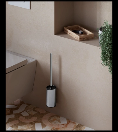 - Oferowana wisząca szczotka do WC została wykonana ze stali nierdzewnej i pokryta czarnym matowym wykończeniem, dlatego jesteśmy przekonani, że świetnie sprawdzi się w łazienkach utrzymanych w nowoczesnym stylu.