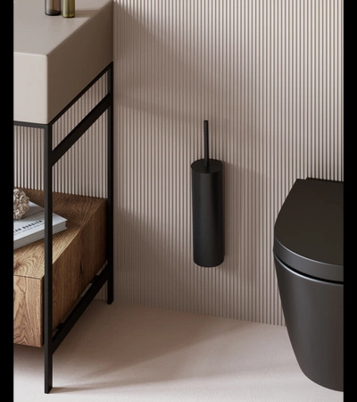 - Czarny nigdy nie wychodzi z mody i pasuje do każdego wnętrza. Naszą wiszącą szczotkę do WC pokrytą matową powłoką dopasujesz bez trudu do każdej toalety.