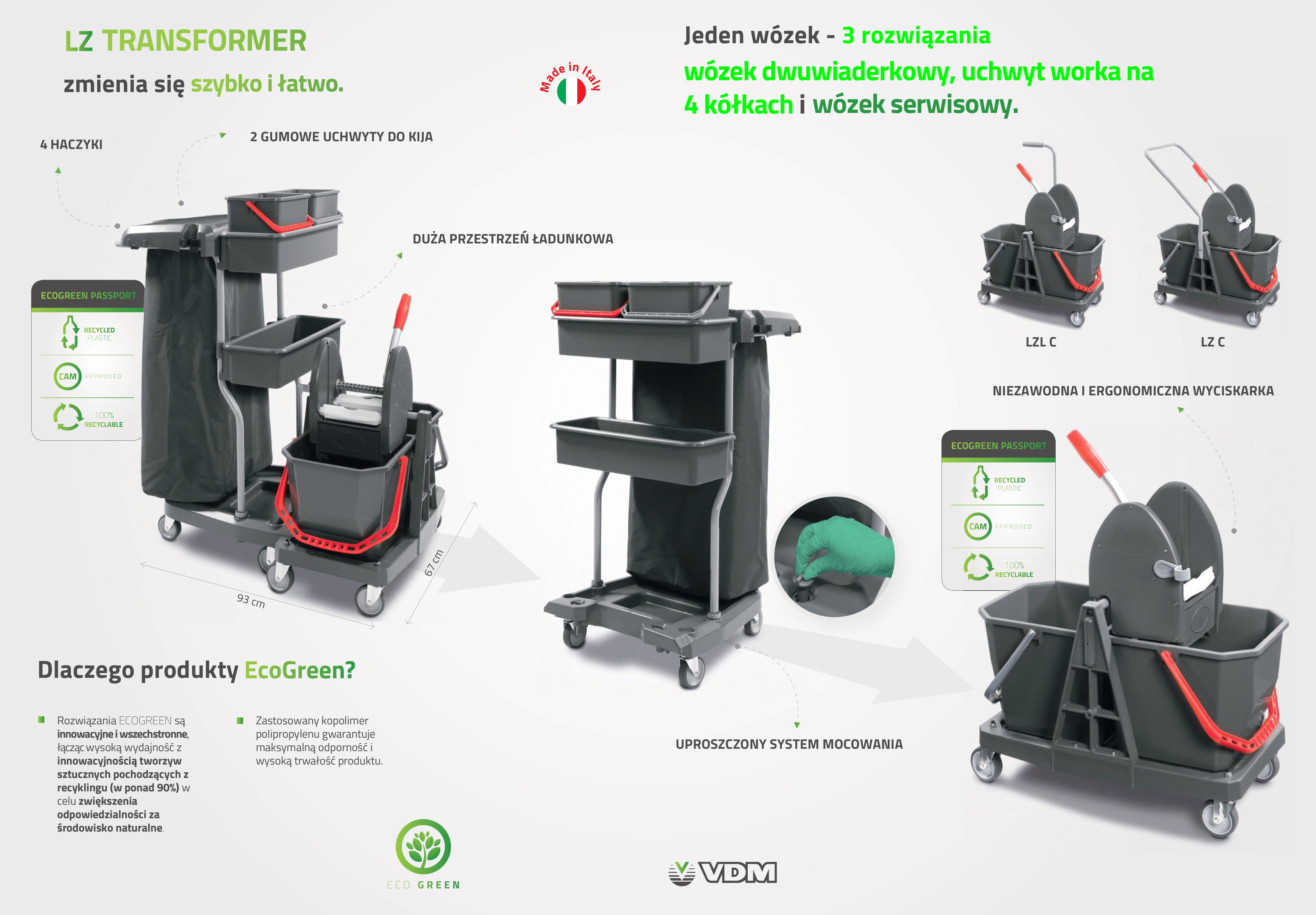 Wózek serwisowy VDM 2 x 18L Transformer z kuwetami i 2 wiaderkami