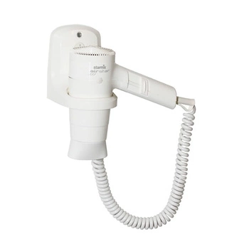 Nowoczesna, biała suszarka o bardzo niskim zużyciu prądu. Jest wyposażona w dodatkowe gniazdo 230 V. Posiada zabezpieczenie antykradzieżowe. Na uchwycie znajduje siępodświetlenie do bezpiecznego odkładania suszarki w nocy. Gwarantuje wysoką higienę.